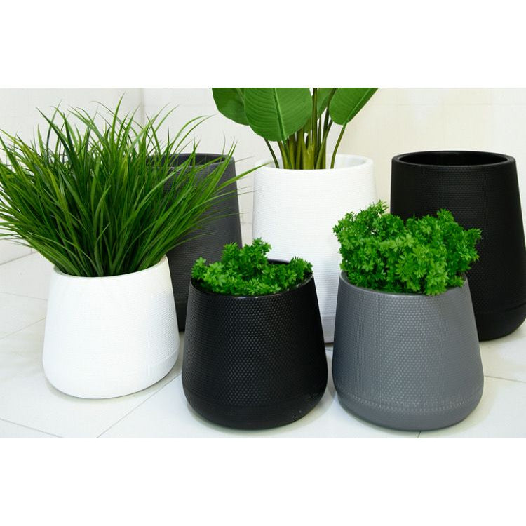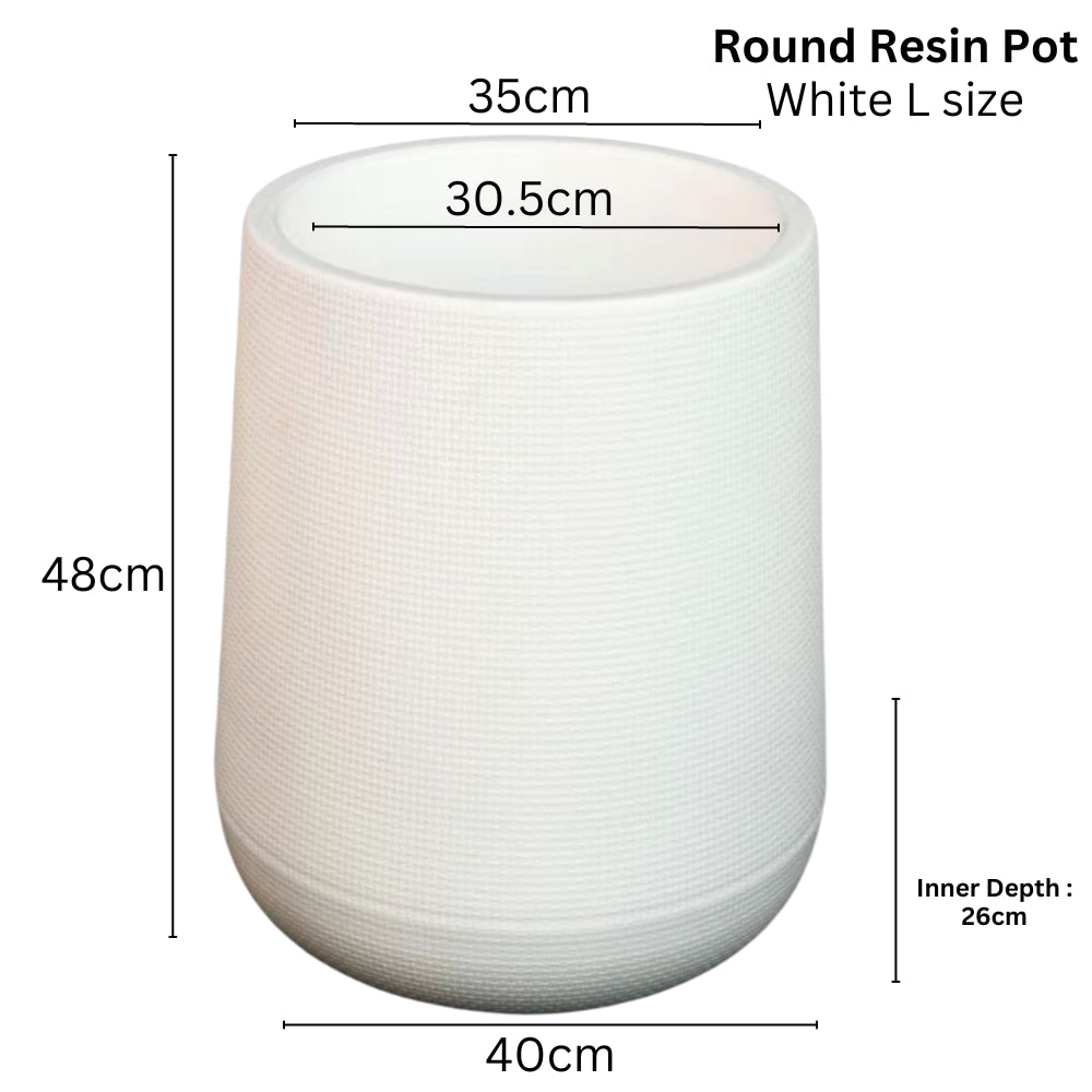 This Resin Round Plant Pot in White is the perfect addition to any indoor or outdoor garden. Made of durable resin, it can withstand any weather conditions and protect your plants. Its round shape allows for proper drainage, promoting healthy plant growth. Upgrade your gardening game with this stylish and functional pot.